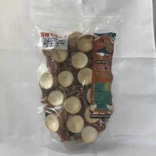 和歌山県那智勝浦産のサメをじっくり長時間かけて低温乾燥をしました。サメの軟骨にはコンドロイチン硝酸(ムコ多糖体の成分で、体の潤滑油とも言われています)がたっぷり。コラーゲン(タンパク質)やカルシウムも多く、ワンちゃんがいつまでも元気で歩けるよう、普段からこまめに取ることをおススメします。100%天然、無着色・無添加です。